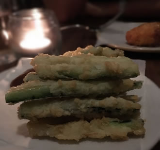 My friend and I enjoyed great cocktails in the bar area, there are sixteen classic cocktails to choose from all cost £8.50. The 'Dark and Stormy' was delicious and my friends Gin Fizz got the thumbs up - as you can see it hardly touched the sides! If you need more tempting you get 50% off ‘Made @ Home’ Cocktails everyday 5.30pm-7.30pm. These were accompanied by melt-in the mouth ham and cheese croquettes (£5) and crispy courgette fritti (£4) from the bar menu.