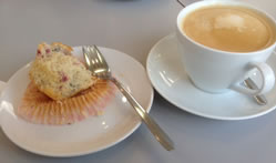 The coffee was generous and the fruit muffins - everything is made by the students, was the healthy option but the carrot cake was very tempting but we stayed strong! In addition the dog was giving a warm welcome as she waited patiently on the decked area by the flag pole.