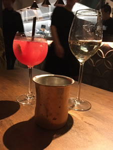 The open kitchen allows you to experience the delicious scent and theatre of the busy kitchen from a row of stylishly-furnished booths. We enjoyed our view and our pre-dinner drinks - including a Thai twist on G&T - the tonic is mixed with fresh watermelon juice from Thailand with a twist of cucumber - a pretty and refreshing twist on the traditional British drink. The restaurant is Tardis-like as from the street it appears to be a bar and small restaurant, but wander past the kitchens and you discover more dinning areas, a soundproof meditation room, which is open to all, and an art area where the exhibitions will change every six weeks.