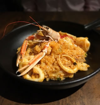 Our starters were both delicious to the taste buds and also to the eye; the crab dum yum (£9.95) has firmly-textured crabmeat served in a black (squid ink) wrapper topped with the slight saltiness of orange fish roe; the chicken yum mai (£8.95) were steamed parcels, combining chicken with glass noodles, pumpkin and strongly-flavoured with delicious wood ear mushrooms and, finally, light crisp por pia tod (£6.95) offering the combination of garlic, coriander and chinese mushrooms with glass noodles served with a delicious light and tangy chilli dip.