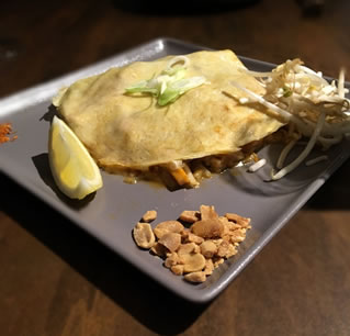 There were many options on the menu that we could have chosen from curries to grills but we opted for 'one pots'. My dining partner chose seafood tom yum with a subtly-flavoured spiced sausage (£19.95) - a Thai take on paella. I chose a more commonly known Thai dish -chicken pad thai (£14.95) - however this is cooked at Yum Sa wrapped in the egg omelette which keeps the noodle and tamarind dish moist.
