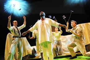 Adam Buchanan as Bertie Lloyd Notice (Mr. Cook) did a great job weaving the puppet White Lion around the stage, and he has great stage presence, his booming voice drawing us into the narrative. Adam Buchanan ( a recent graduate of the Guildhall School of Acting ) is an energetic Bertie and also plays the character of Michael (the young boy who is hearing the story about the White Lion from Millie). Excellent support comes from Gina Isaac ( Bertie's mother) and Michael Palmer (Bertie's father), and it was a good all-round ensemble performance. The set (designed by Juliet Shillingford) moved seamlessly from the African veldt, to a mountain backdrop in England, with the image of a Lion chalked into the hillside. It transformed into the First World War trenches with sutble use of lighting, and culminated in a dazzling confetti-like shower of blue 'butterflies' at the end. (The title Butterfly Lion refers to the picture of the Lion carved by Bertie and Millie into the chalky hillside, which attracts blue butterflies). The show, adapted by Daniel Buckroyd (Artistic Director of the Colchester-based Mercury Theatre) is currently on tour and is at the Richmond Theatre this week finishing on Saturday (Nov 9th) so there's not much time to get tickets. However, if you have children who enjoy reading Michael Murpurgo, it is well worth trying to get to see it. However the Butterfly Lion is a production that can be enjoyed by all ages. My ten-year old commented that it was "very touching" and I agree. Mon – Sat eves 7.30pm, Wed & Sat mats 2.30pm RICHMOND THEATRE The Green, Richmond, Surrey, TW9 1QJ Box Office: 0844 871 7651 (fees apply) www.atgtickets.com/richmond (fees apply) Tickets £10 - £25