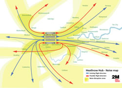 The group recently publish research highlighting the new areas of London which could be affected by flightpath noise if two new runways are built on the site. Images of the potential arrivals (shown above left ) and departures (shown above right) maps can be downloaded from Wandsworth council's website. 2M also warns that more runway capacity will not guarantee better connections between London and emerging markets. In practice the airlines will use extra runway slots to fly to the most profitable routes, not untested new services to cities in China. May 17, 2013 |