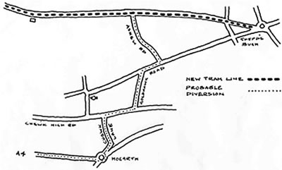 The recent revelation that Transport for London was planning to divert all traffic travelling westbound down the Askew Road 'in the direction of the A4' has caused a huge amount of uncertainty about proposals for a West London Tram. With the consultation close to a conclusion it remains unclear whether there are any plans to notify residents of this alteration to the scheme as presented in the original consultation documentation. The sketch map below shows the likely route that traffic will have to follow. Residents are already labelling it the Acton By-pass. Probable route of 'Acton By-pass'