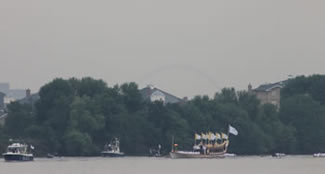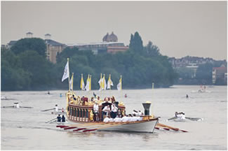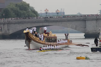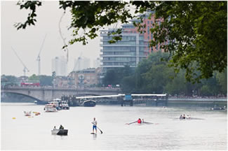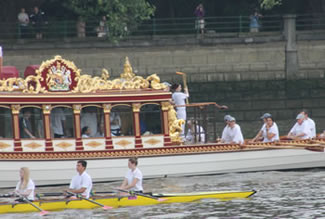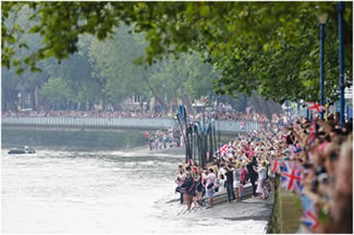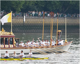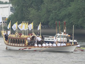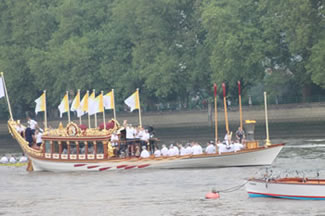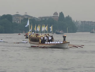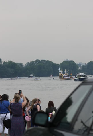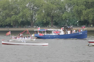 Olympic Flame Carried Past Putney & Fulham On Gloriana