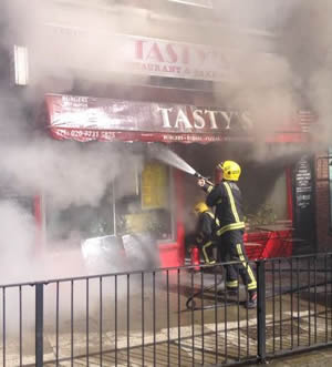 Traffic at a standstill as fire crews tackle blaze at Tasty's Cafe